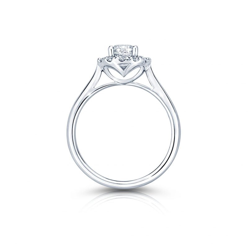 ดีไซน์แหวนที่มีเพชรเม็ดกลางโอบล้อมไปด้วยเพชรเม็ดเล็ก ทำให้เพชรดูมีขนาดใหญ่และหรูหราขึ้น แถมยังซ้อนลูกเล่นของกระเปาะเพชรหัวใจด้านข้างเพื่อเป็นการแอบบอกรักไปในตัว ดีไซน์นี้เปรียบเสมือนความรักที่อบอวลไปด้วยเรื่องราวของความสุข,ความสดใสและเสียงดนตรี