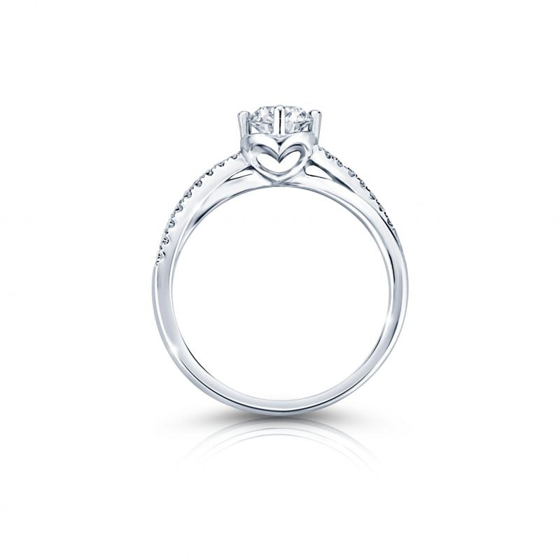 ดีไซน์แหวนคลาสลิก กระเปาะเพชรรูปหัวใจแฝงความเก๋ไก๋ด้วยก้านแหวนทรงไขว้น่ารักที่ถอดแบบมาจากเครื่องหมาย Infinity หรือเลข 8 ดีไซน์นี้เปรียบเสมือนเส้นทางความรักของคนสองคนที่เข้ามาผูกพันกันและมีคำมั่นสัญญาว่าจะรักกันตลอดไปไม่มีที่สิ้นสุด