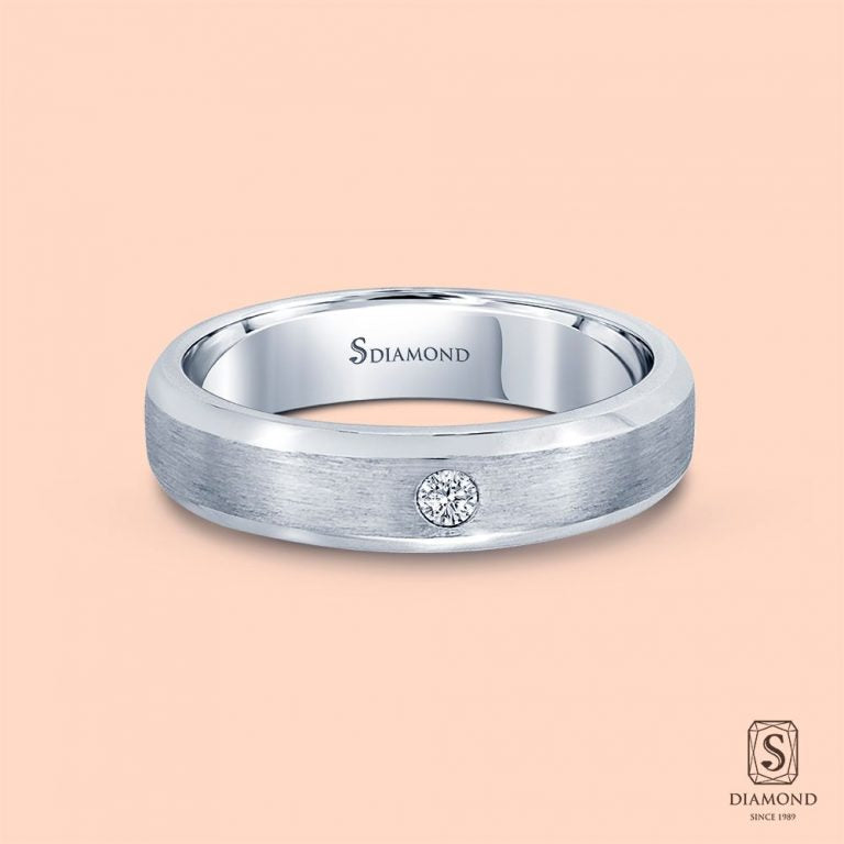 แหวนชาย Comfort Fit Satin Brushed Cut Corner